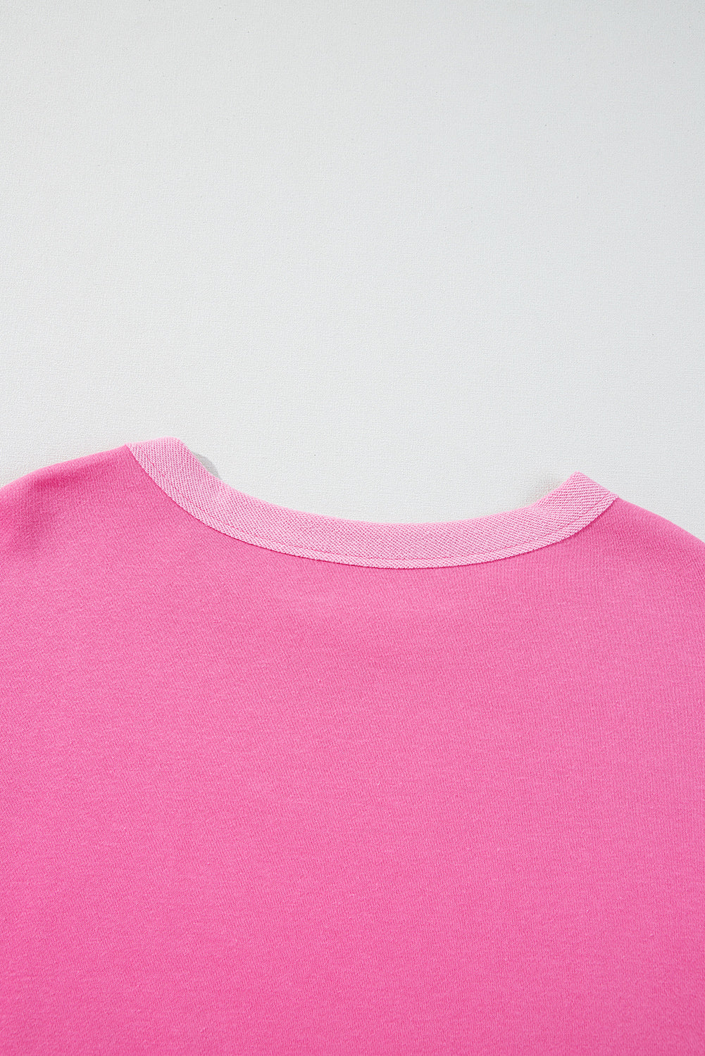 Sachet Pink High Low Patchwork Long Sleeve Top and Shorts Set